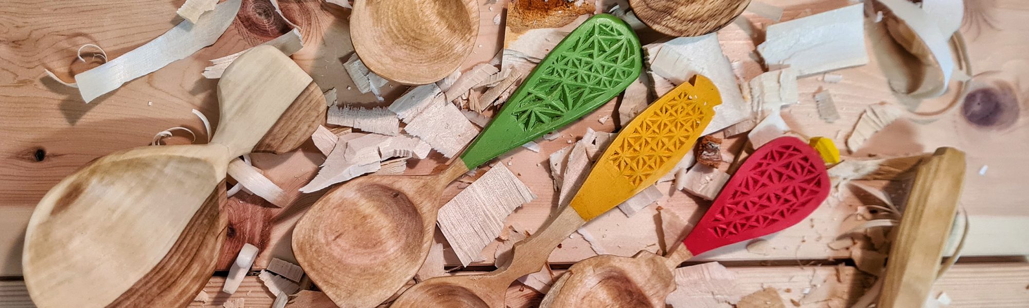 Vi går igenom kniv- och yxtekniker löpande, och du får kontinuerlig feedback och coachning under hela processen. Målet första dagen är att du ska hinna tälja klart formen på din sked eller slev. Under dag två fördjupar vi oss i dekorering med enklare karvsnitt. För dig som vill kommer vi även att gå igenom målning med linoljefärg eller mjölkfärg.